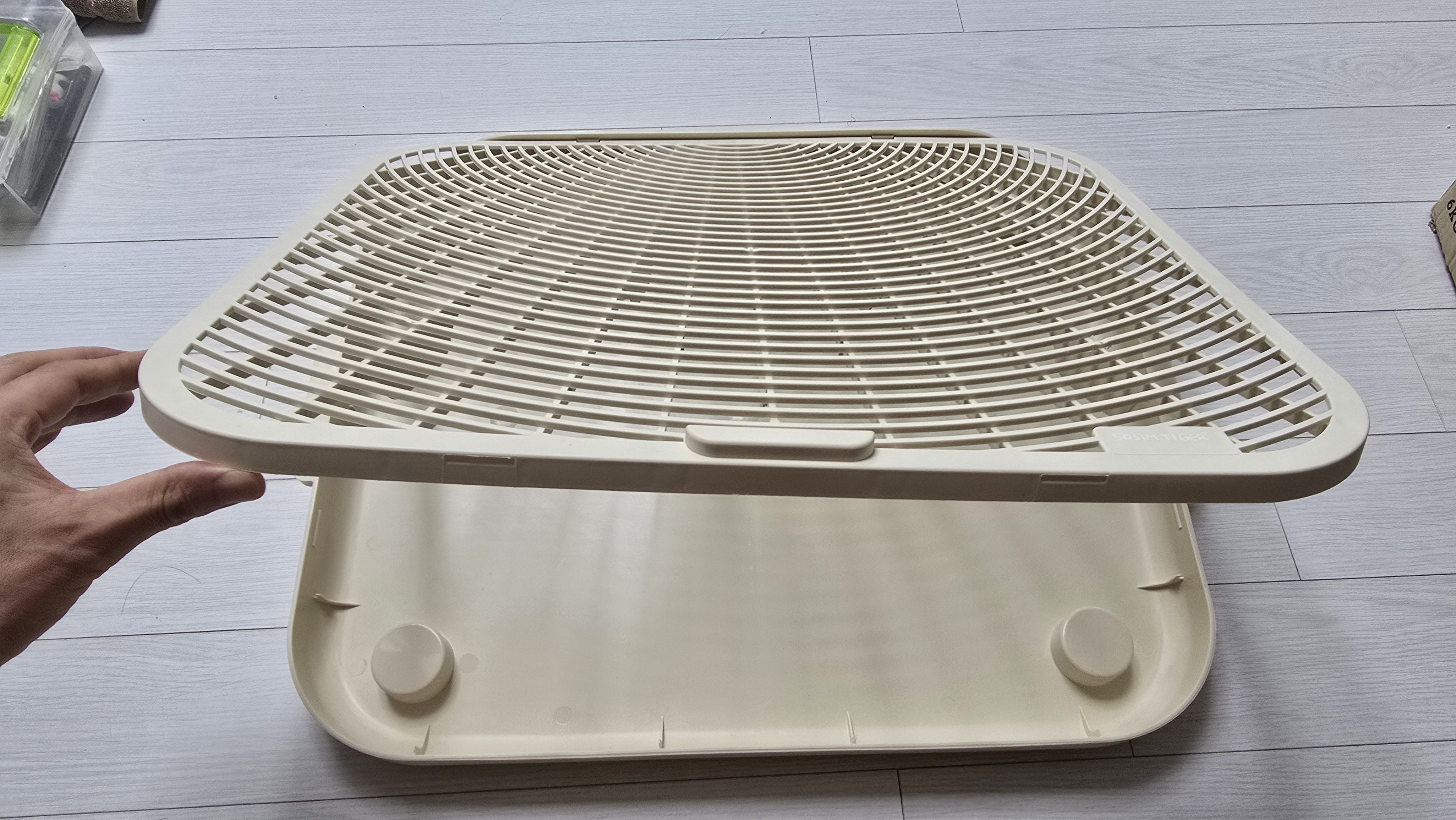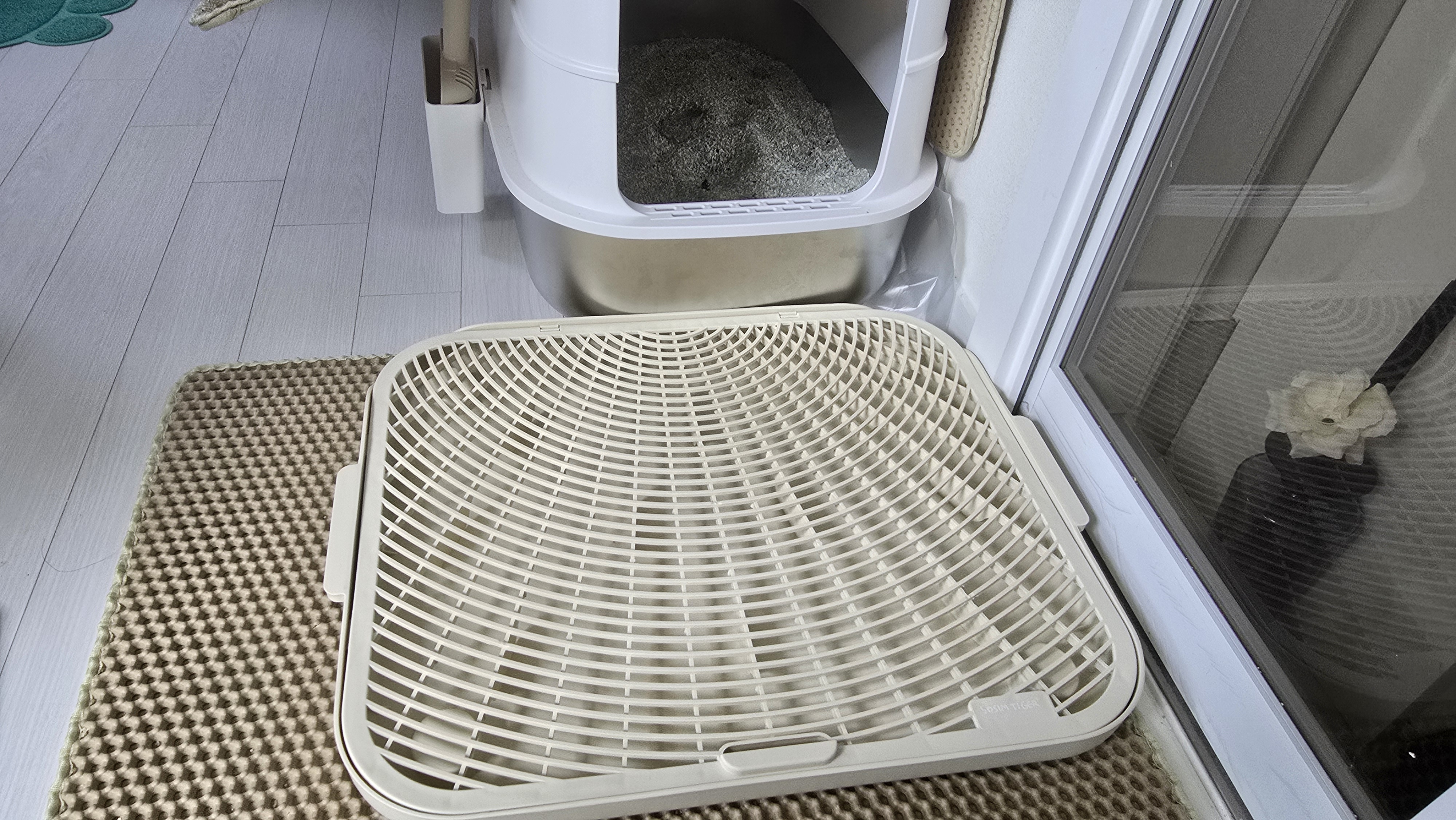 고양이 화장실 옆에 모래가 흩어지는 일,
