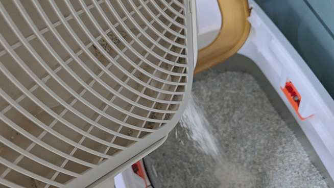 고양이 화장실 옆에 모래가 흩어지는 일,