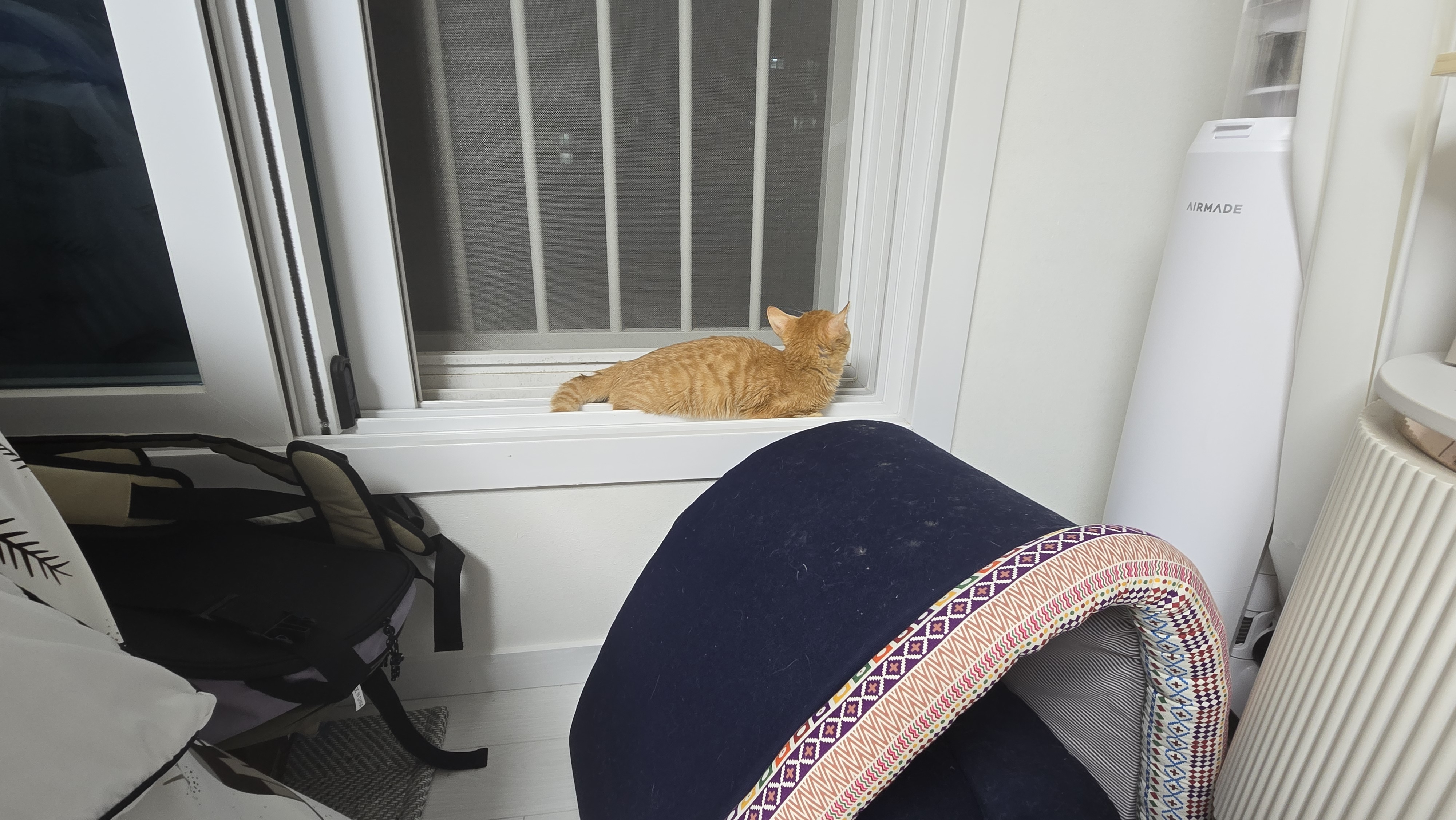 저녁에 창문을 열어두었더니 모카가 안 보여서 한참을 찾았습니다.