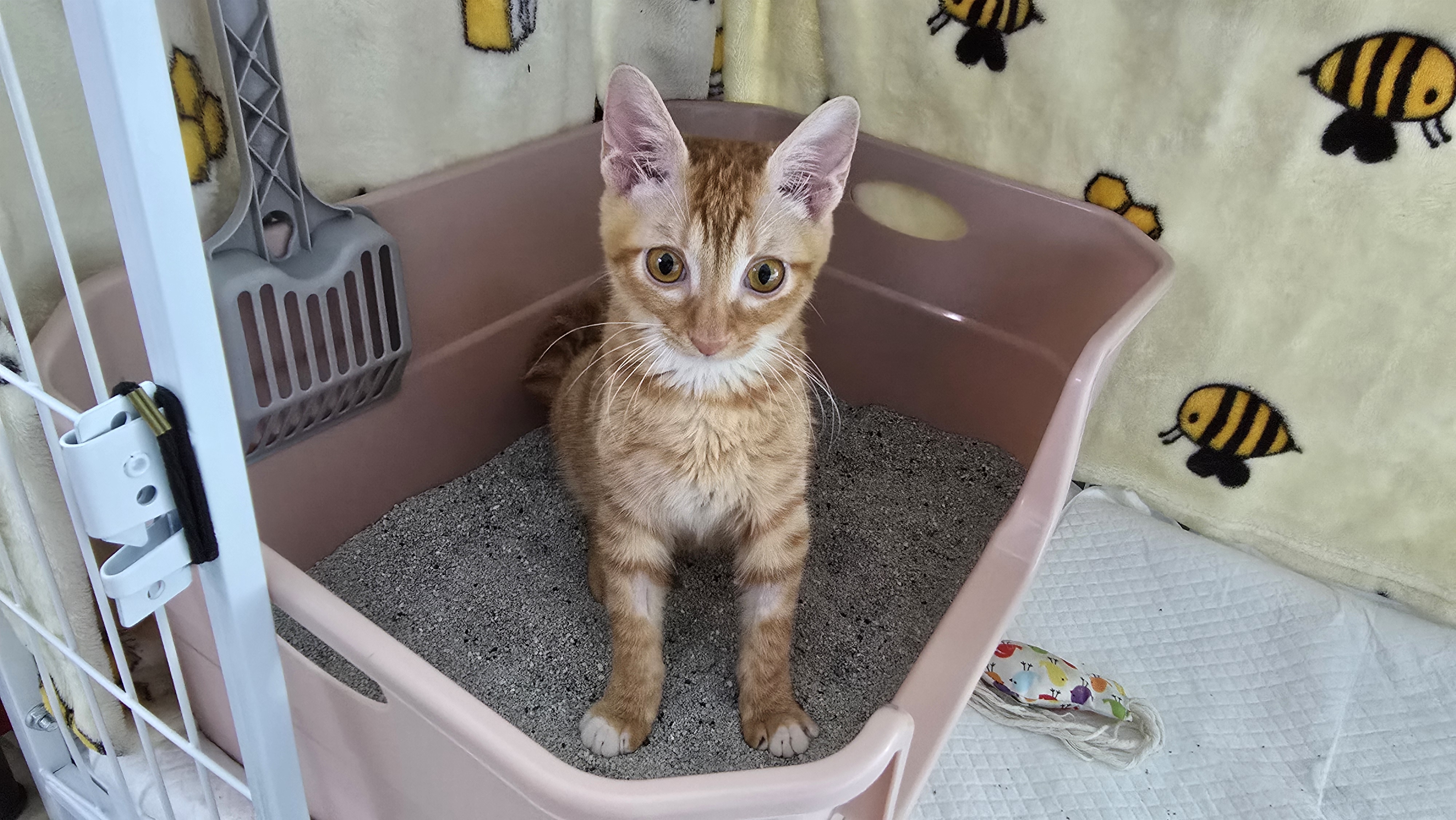 낮 동안은 안정적이지만, 여전히 케이지 안에서만 마음을 놓습니다. 그 안에서 장난을 치고, 화장실 안에서는 긴장을 풀고 쉬는 모습이 눈에 띕니다. 이 작은 공간이 모카에게는 세상에서 가장 안전한 영역입니다.