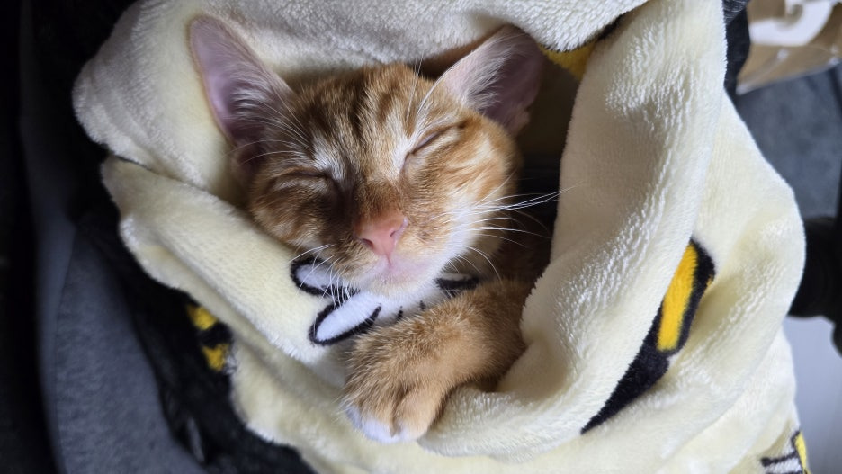 씻고 말리고 나서 떨고 있길래 이불로 감싸줬더니 그대로 잠들어 버리는..