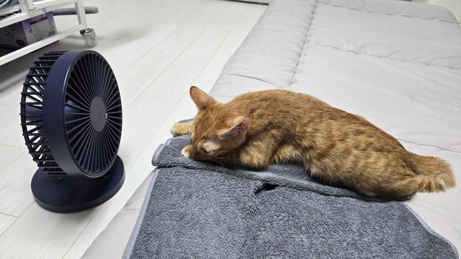 에어컨 틀고 선풍기 바람 쐬어주면서 물티슈로 귀나 등 겨드랑이쪽 쓱쓱 닦아주고 있네요.