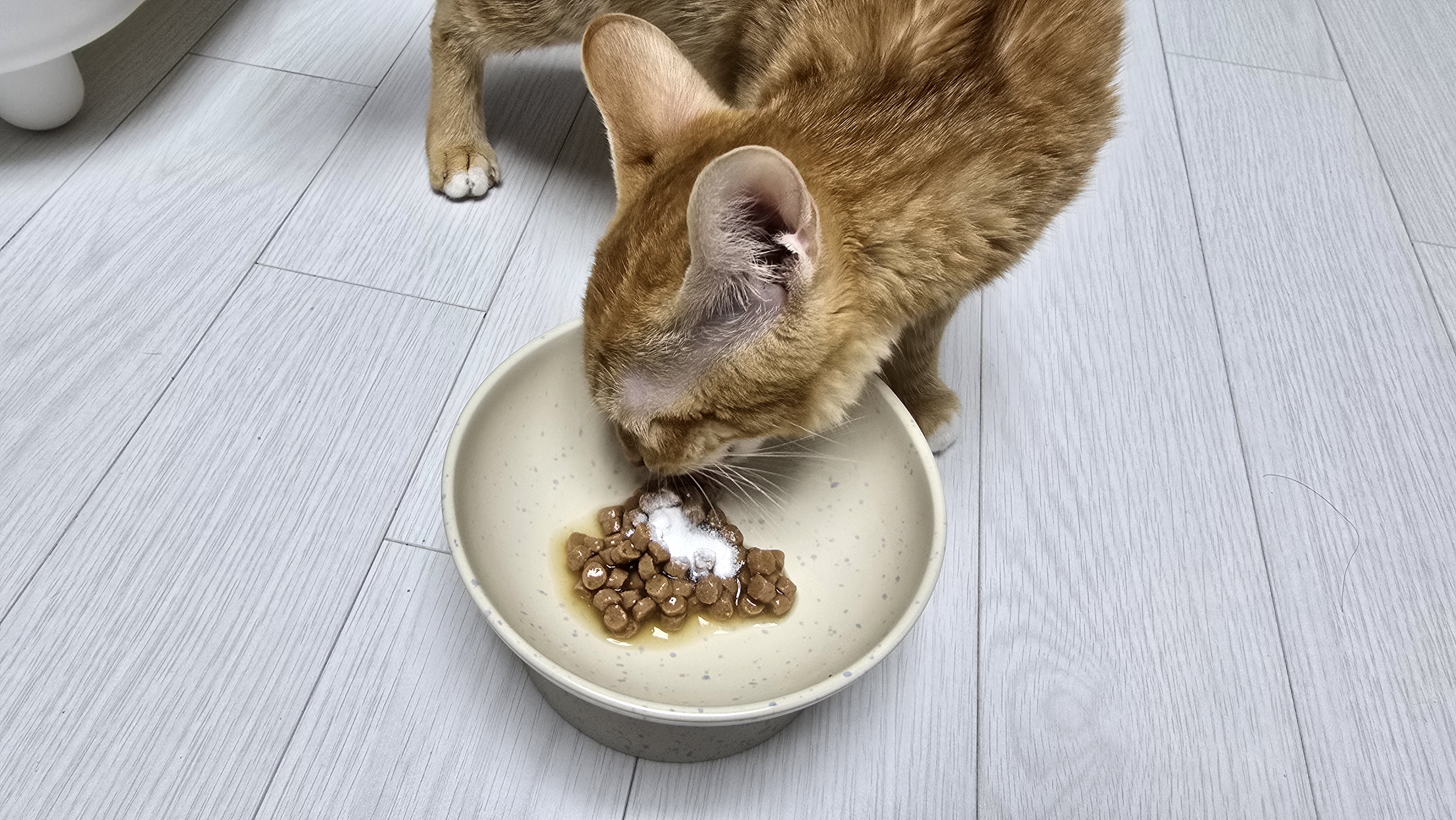 갈아낸 약은 따로 섞지 않아도 되는 형태라 바로 급여해봤습니다. 모카는 평소보다 더 잘 먹더군요. 깔끔하게 마무리된 약가루 덕분인지 맛의 거부감이 덜한 듯합니다.