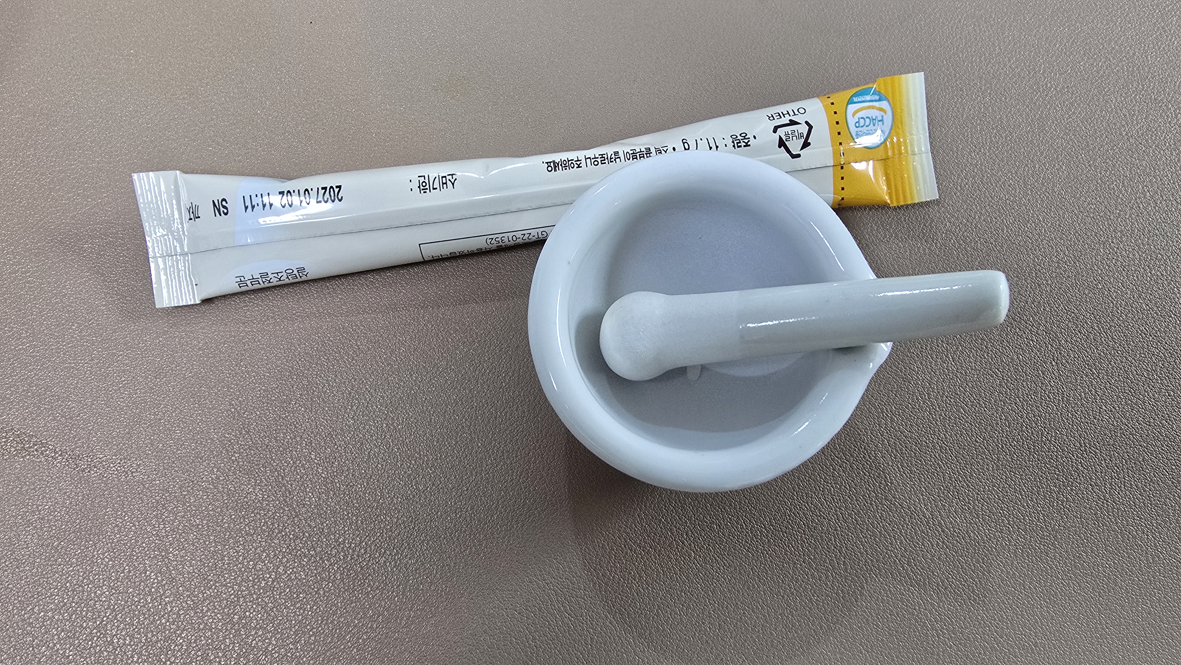 그래서 새로 구입한 제품이 바로 유발 유봉 세트입니다. 도자 재질로 만들어져 표면이 매끄럽고, 가루가 달라붙지 않아 청결 유지가 쉽습니다.