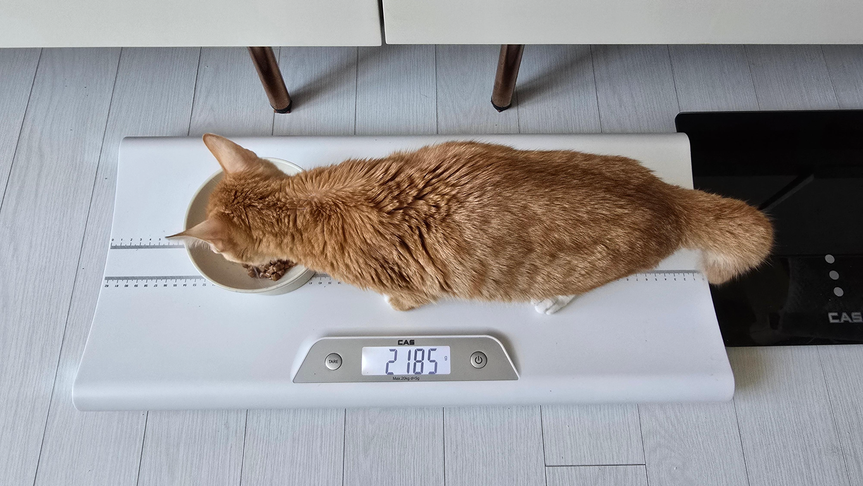 며칠 전부터 모카의 체중 증가 속도가 눈에 띄게 완만해졌습니다. 초반에는 매일 빠르게 늘던 체중이 요즘은 조금씩 더디게 오르고 있습니다. 아침에 대소변을 본 뒤 체중을 재면 2.1kg 초반대, 식사 후에는 약 100g 정도 증가하긴 하지만 전체적으로 안정기에 접어든 듯합니다. 물론 식욕도 좋고 활력도 유지되고 있기 때문에 큰 걱정은 없습니다. 다만 치료가 길어질수록 체중계 눈금 하나에도 마음이 흔들리네요.