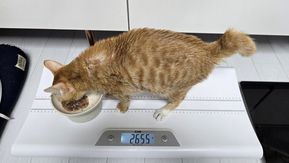 하루만에 약 먹인다고 네번을 사료에 섞여 먹이다보니 그새 뱃속이 꽉 찼는지 2655g ㅋㅋㅋ