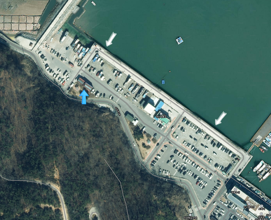 하얀 화살표 방향으로 낚시 하시는 분들이 종종 계신데.. 여기서도 가능은 하지만 차가 지나다닐 공간쯤은 계산해서 공간을 내주시면 좋겠습니다.