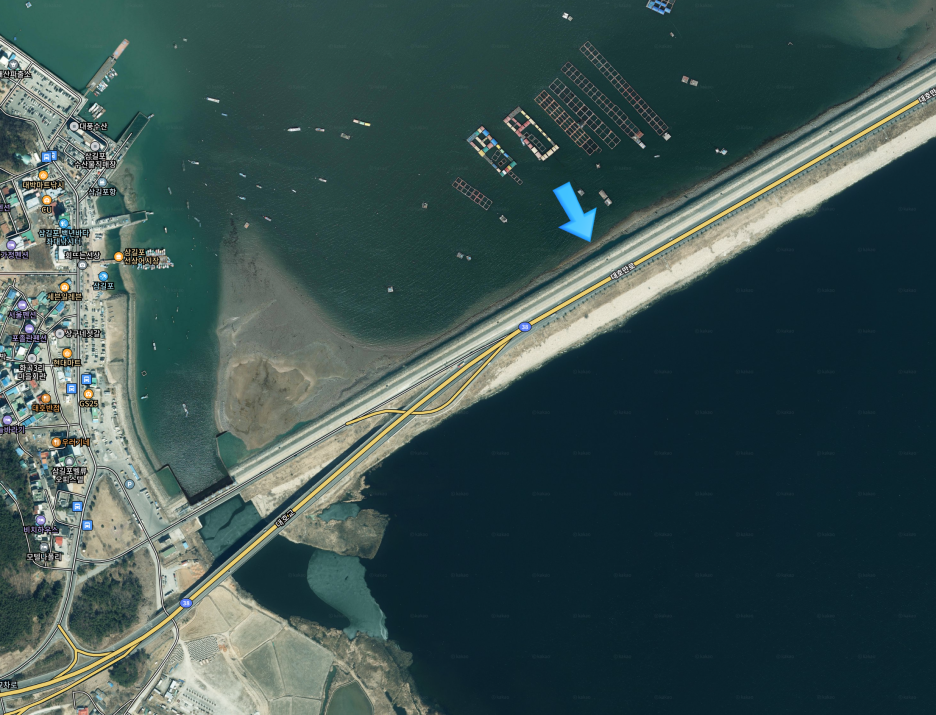딱 대호만 방조제 앞에서 행정 구역이 나뉩니다.