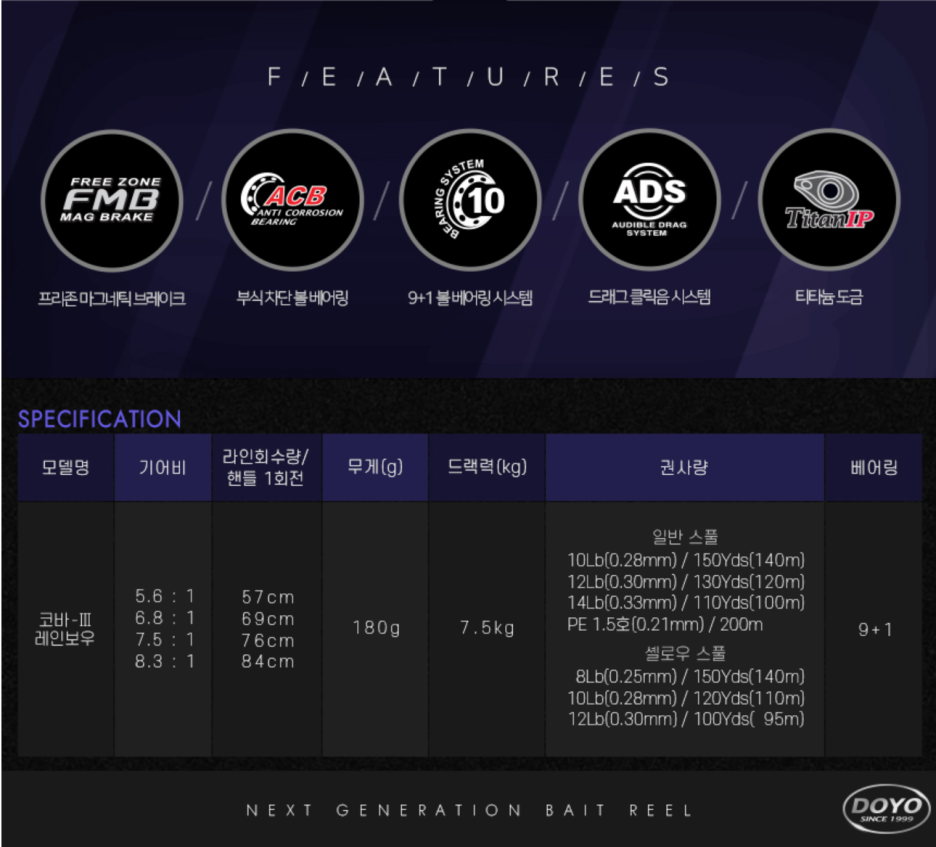 코바3 제품은 해수 담수 겸용 제품이라 민물 배스에서도 많이 사용하는데 핸들을 파워 핸들로 구매하여 사용하는 것이 오히려 편할수 있습니다.