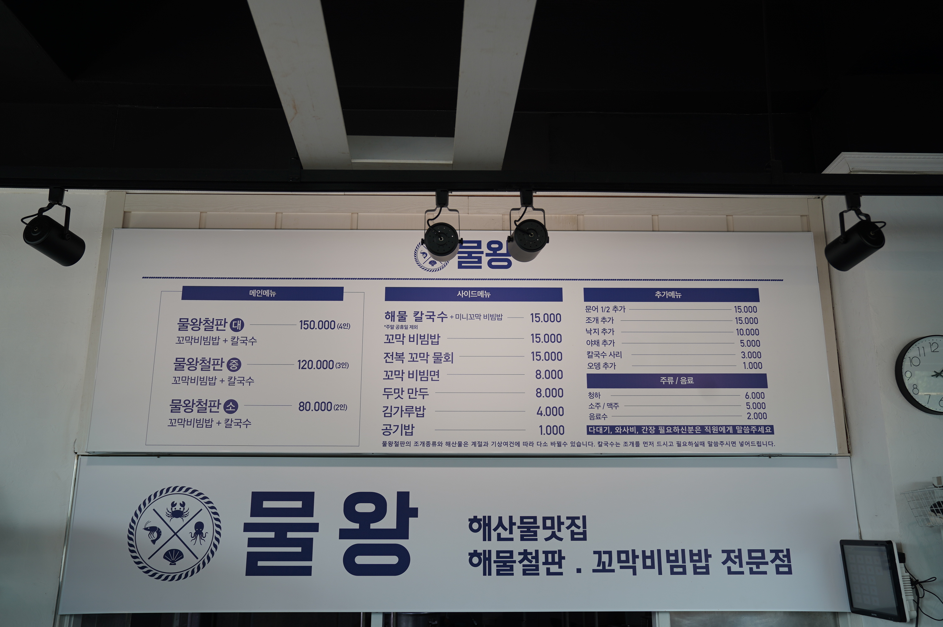 지난 주말, 대표님(와이프)의 미션이었던 추어탕 대신 딸아이의 입맛에 맞춰 급하게 메뉴를 변경해야 했습니다. 예전에 낚시하러 종종 들렀던 물왕저수지 방향으로 핸들을 돌렸습니다. 주말이라 그런지 역시나 물왕저수지 주변은 많은 사람들로 북적였는데요. 아름다운 저수지 뷰는 좋았지만, 교통 체증을 뚫고 도착한 곳은 해물철판과 꼬막비빔밥 전문점 '물왕'이었습니다. 바로 옆에 '불왕'이라는 쭈꾸미집도 있어서 순간 헷갈렸지만, 저희는 원래 목적대로 해산물 파티를 즐기기로 결정!