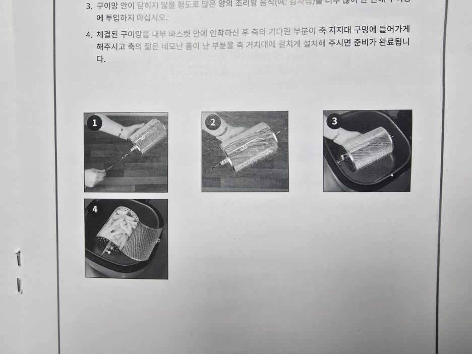 위에서 돌아가는 부분에 기름이 떨어지는 음식을 조리 한다면 아래쪽 용기 부분에서는 그 기름이 떨어지기 때문에 기름이 들어가도 상관 없는 조합을 해야만 한다는 거죠 ㅠ.ㅠ