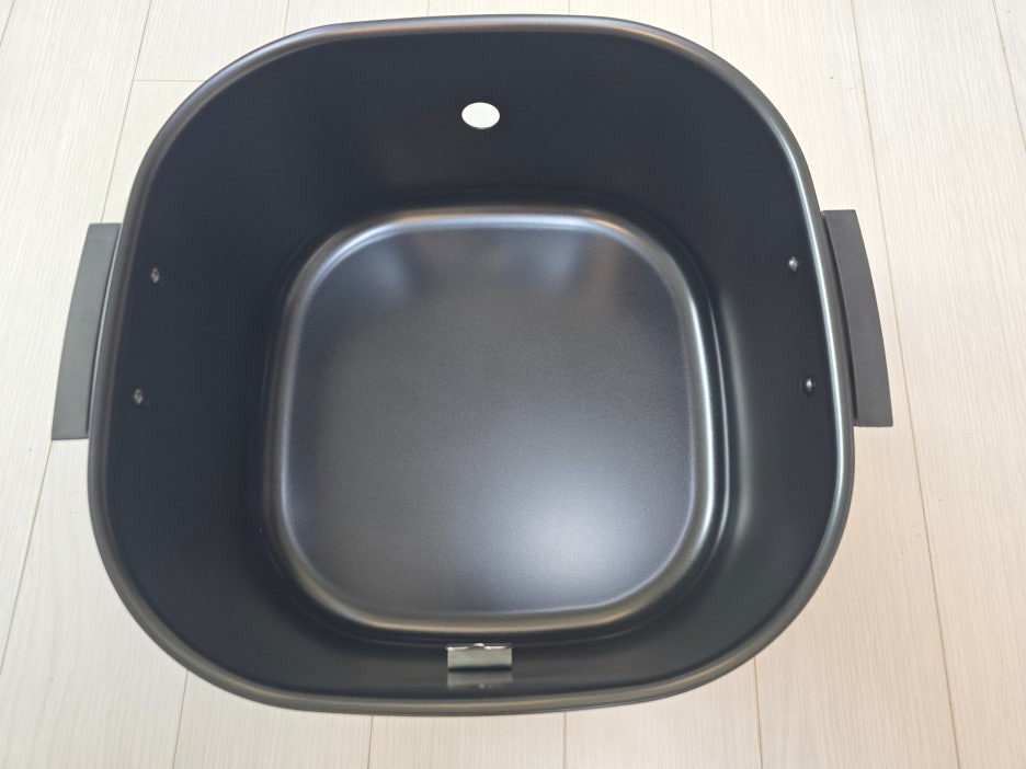 내부 용기를 열면 회전하는 걸 거는 고리 하나와.. 회전축과 연결하도록 구성된 구멍이 하나 있습니다.
