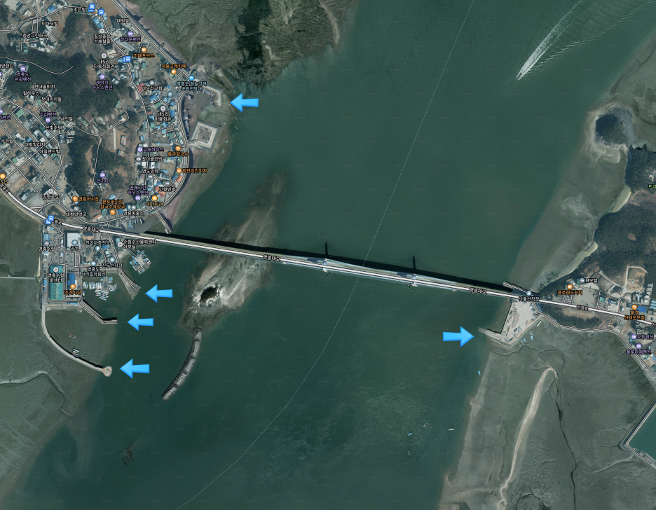 선재 대교를 건너 위쪽은 수심이 낮아서 낚시를 잘 하는 곳은 아닙니다.