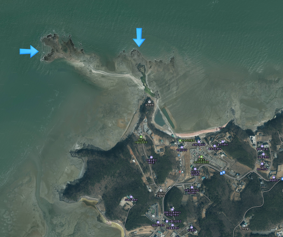 왼편 상단 하늘고래 공원 전망대~~ 라고 쓰여진 곳은 화장실도 있고 끝단에서 간조시에도 물이 아주 많이 빠지는 시기만 아니면 낚시가 가능한 곳입니다.