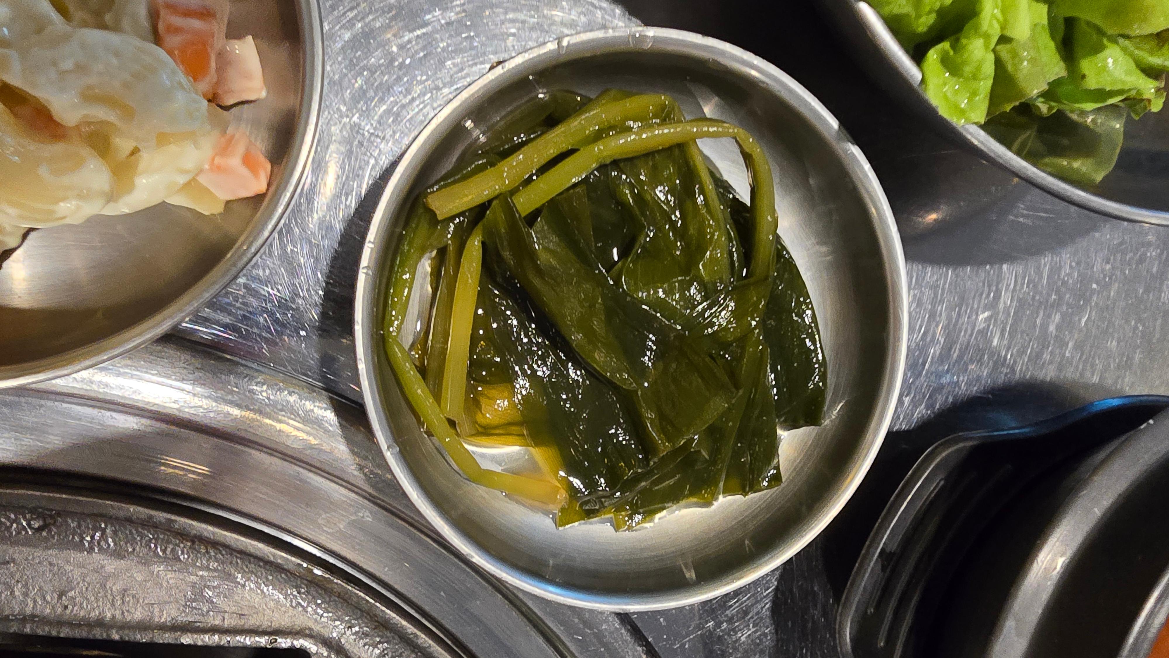 직원분이 고기를 알아서 잘라주고 김치볶음과 멸젓을 올려주신다.