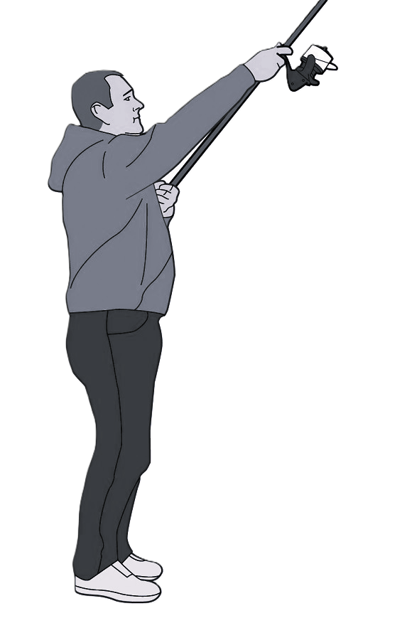 피니쉬 동작에서는 낚싯대를 너무 아래로 내리지 않도록 일정 각도 이상에서 멈추는 연습을 하는 것이 좋습니다. 그래야 앞에 장애물이 있을 때 로드가 내리쳐 파손되는 것을 막을수 있습니다.
