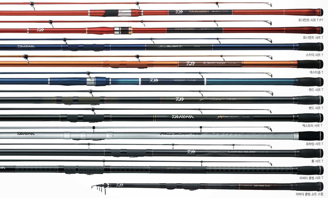 낚싯대는 먼저 펴는 방식에 따라 텔레방식(안테나처럼 뽑아 쓰는 방식)과 꽂기방식(폴대처럼 연결하는 방식)으로 나뉩니다. 이와 더불어 낚싯대의 강도, 즉 휨새에 따라 연질대와 경질대로 구분할 수 있습니다. 로드가 부드러운 연질대는 입질에 민감하게 반응하여 손맛을 느끼기 좋지만, 경질대에 비해 비거리가 다소 아쉽다는 특징이 있습니다. 반대로 뻣뻣한 경질대는 캐스팅이 안정적이고 대물을 강제로 끌어내기 좋지만, 입질이 둔탁하게 느껴질 수 있습니다. 어떤 로드가 정답이라고 단정할 순 없지만, 제 경험상 처음 시작할 때는 연질과 경질의 중간인 중경질대를 추천해 드립니다.