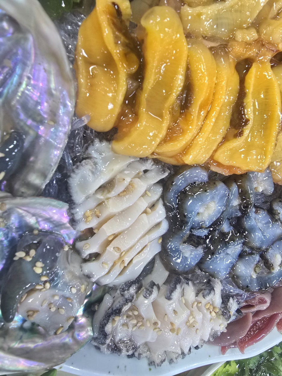 멍게와 해삼 게불.. 전복 낚지 가리비 등등 해산물은 기본 깔고 가는 반찬이죠 ^^