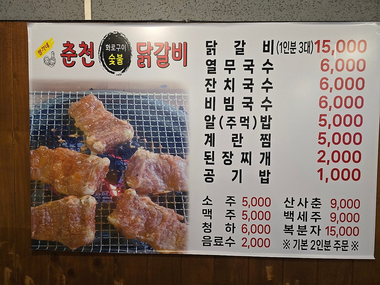 일반적인 춘천닭갈비처럼 커다란 팬에 구워서 먹는 방식이 아닌 숯불에 돼지 갈비마냥.. 뼈대에 붙은 살로 구워먹는 방식입니다.