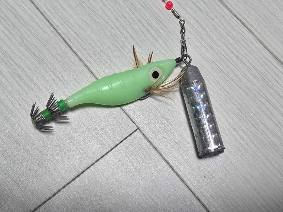 물론 기성채비 역시 채비를 연결하고 봉돌 물리고 에기 물리고 하고 끝입니다.