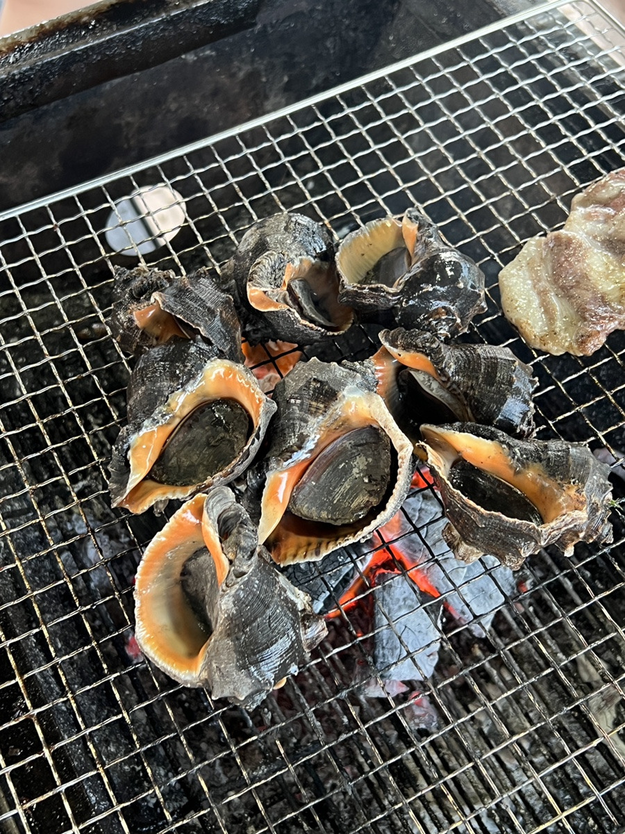 아쉽게도 꽝~~ 이지만.. 들어갈때 선장님이 주신 소라를 구워서.. 먹어봅니다.