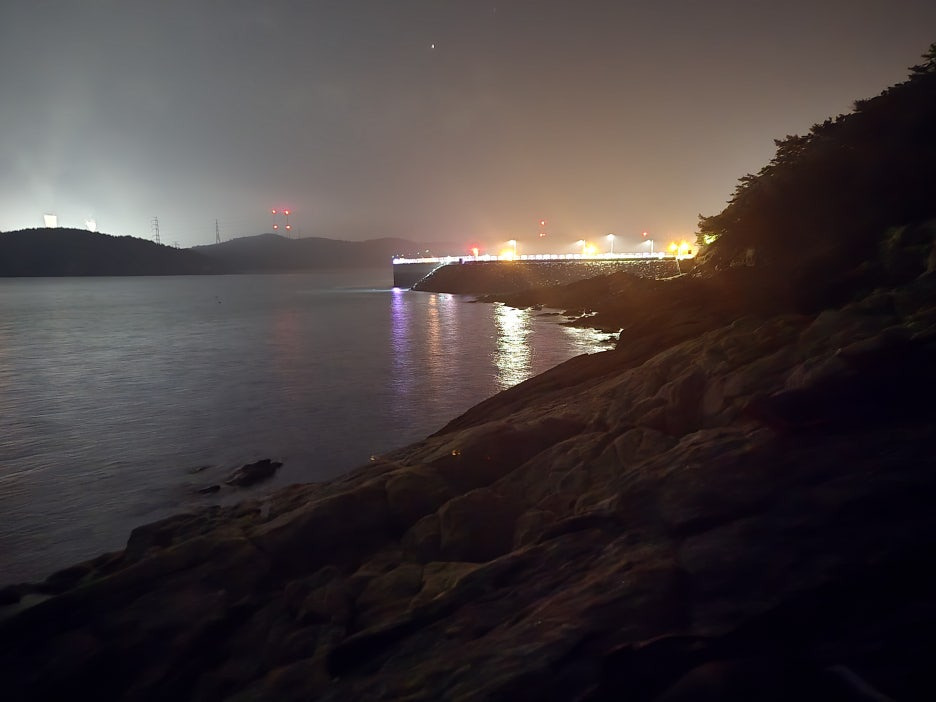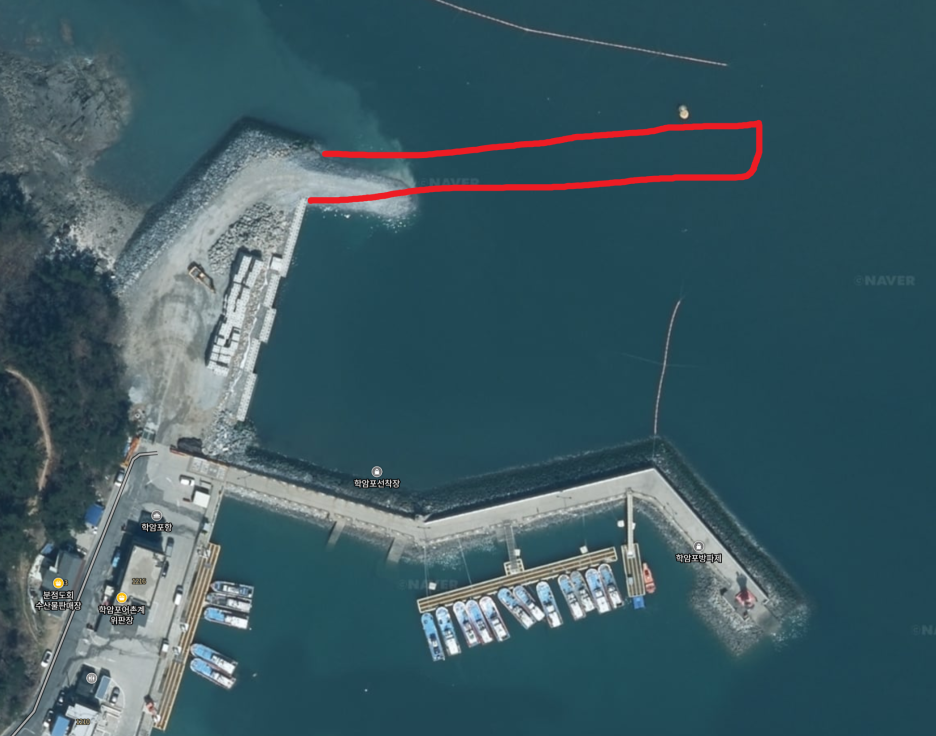 완공된 방파제 사진 조명이 아주 잘 되있어서 편하게 낚시를 할수 있고 테트라가 아닌 석축이라 끝단에서 낚시를 하시면 밑걸림은 거의 없습니다.