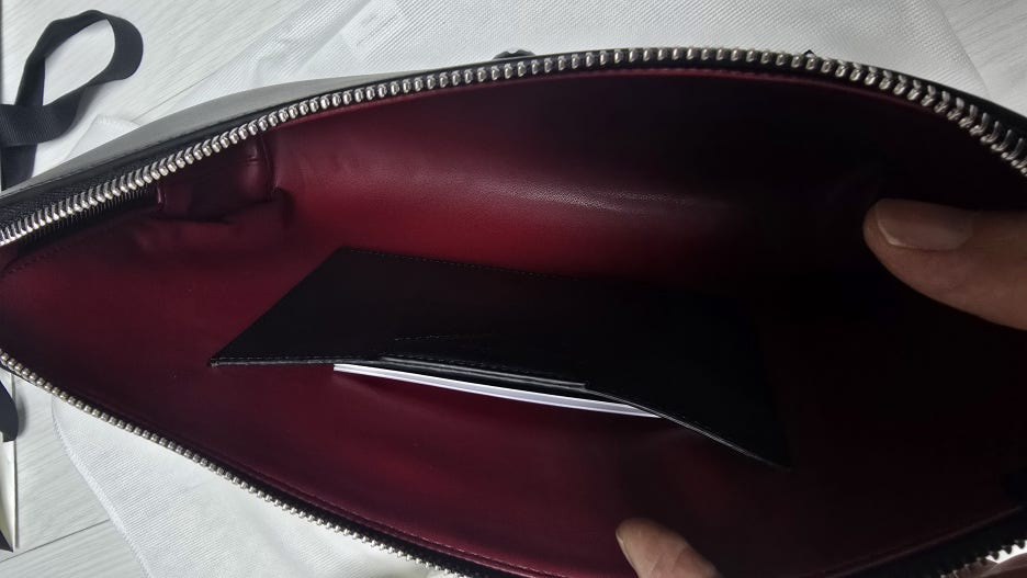 일반적인 클러치 타입보다는 가벼운 파우치 형태로 보이지만 사이즈가 응근 작지 않습니다.