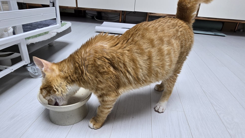그것 때문에 맏이 태태의 사료는 식탁위로 다 올려두고 있고, 그것 때문인지는 몰라도 간식을 주면 앉은 자리에서 쉬지 않고 한번에 다 먹네요. ^^