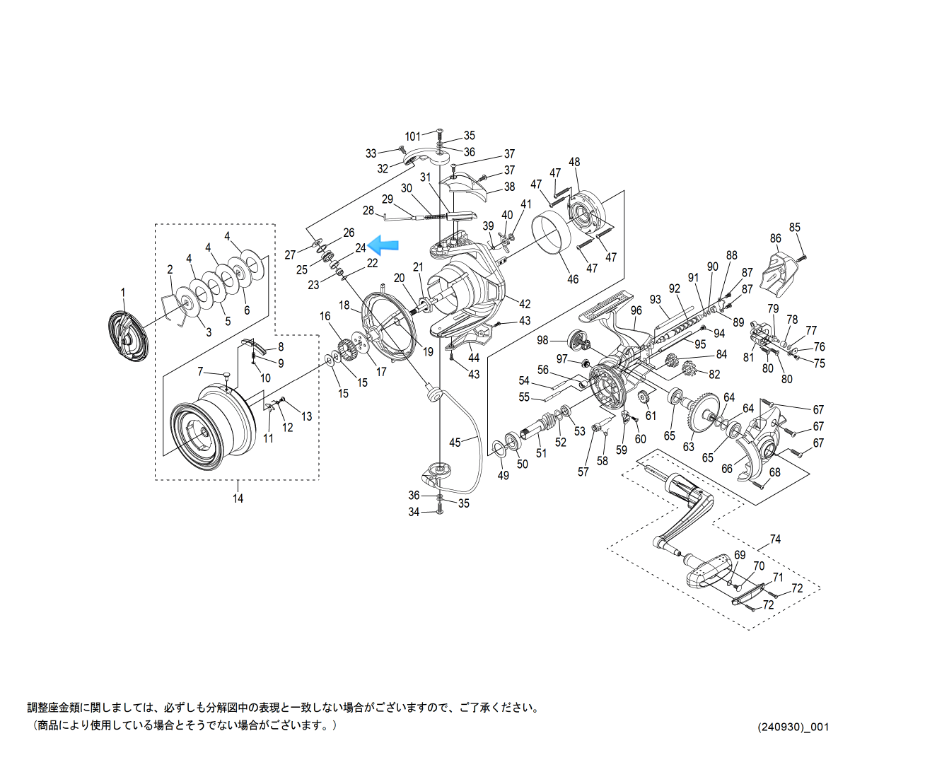 - 라인롤러 부싱(24번) -> 베어링 튜닝은 필수: 10년형 모델의 라인롤러 부분(16번)에는 베어링이 적용되어 부드러운 라인 관리를 도왔습니다. 하지만 25년형에서는 이 부분이 부싱으로 변경되었습니다. 라인 마찰을 줄이고 수명 연장을 위해 베어링으로의 튜닝은 반드시 필요할 것으로 판단됩니다. 조만간 관련 튜닝 정보가 속속 올라올 것으로 기대하고 있습니다.