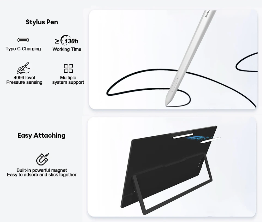 Z22P PRO의 가장 놀라운 특징은 바로 스타일러스 펜 지원입니다. 이 제품은 단순한 10포인트 멀티 터치를 넘어, 전용 충전식 스타일러스 펜을 기본으로 제공합니다. 전문적인 와콤 타블렛만큼의 수천 단계 필압을 기대하기는 어렵지만, 일반적인 필기나 취미 드로잉, 사진 편집용으로는 손색이 없습니다.